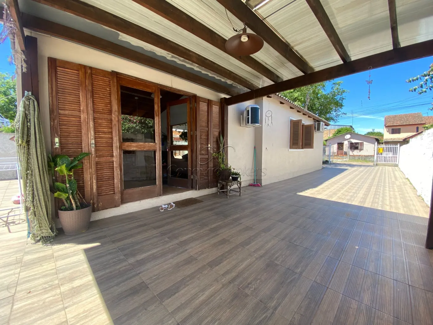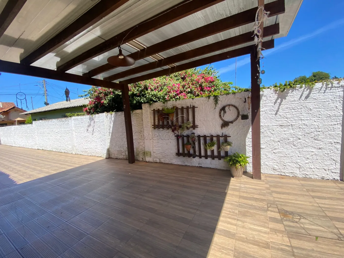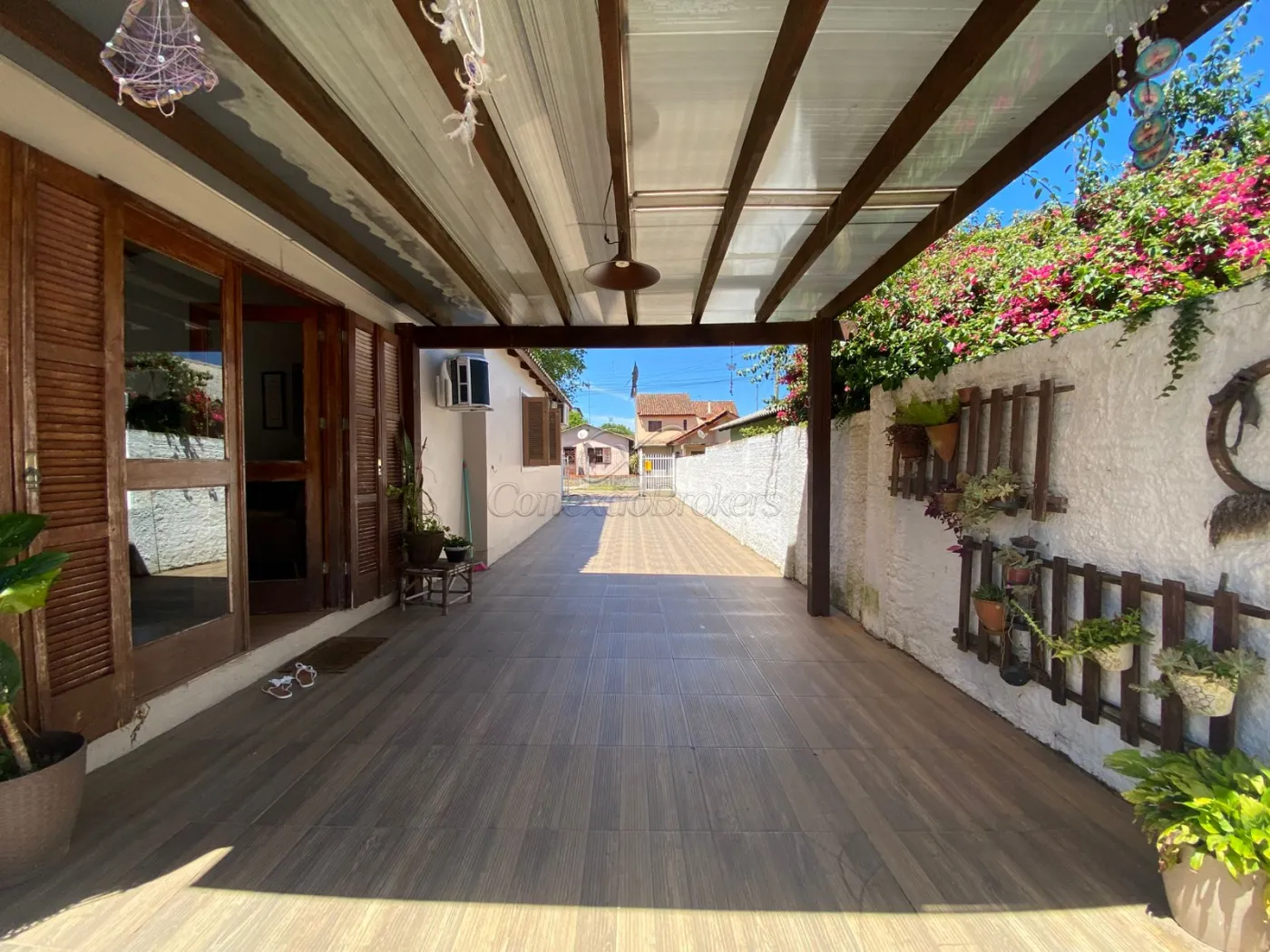 Pergolado coberto na lateral;