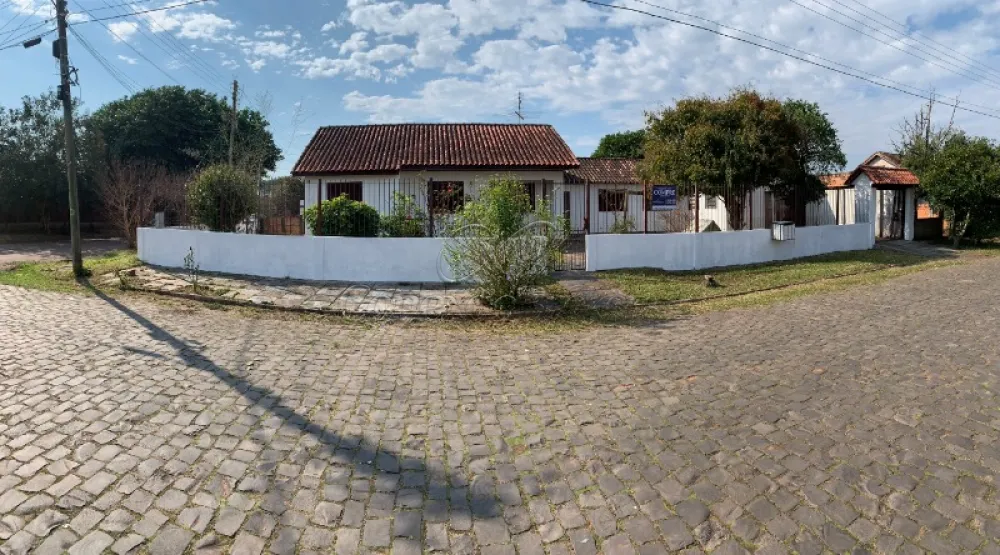 Residência de esquina em rua tranquila com garagem para dois carros e área de lazer em Charqueadas