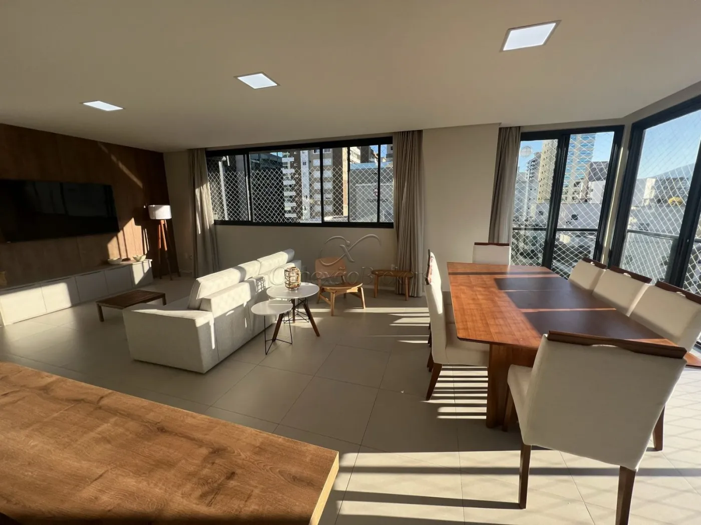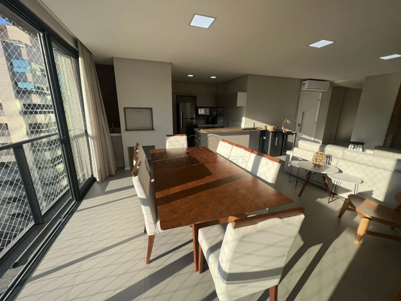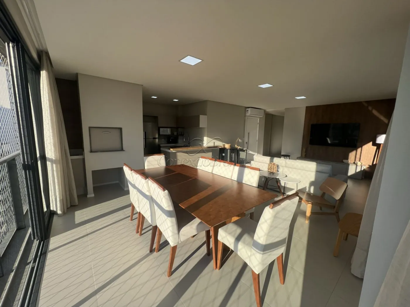 * Sala e sacada integrada com churrasqueira