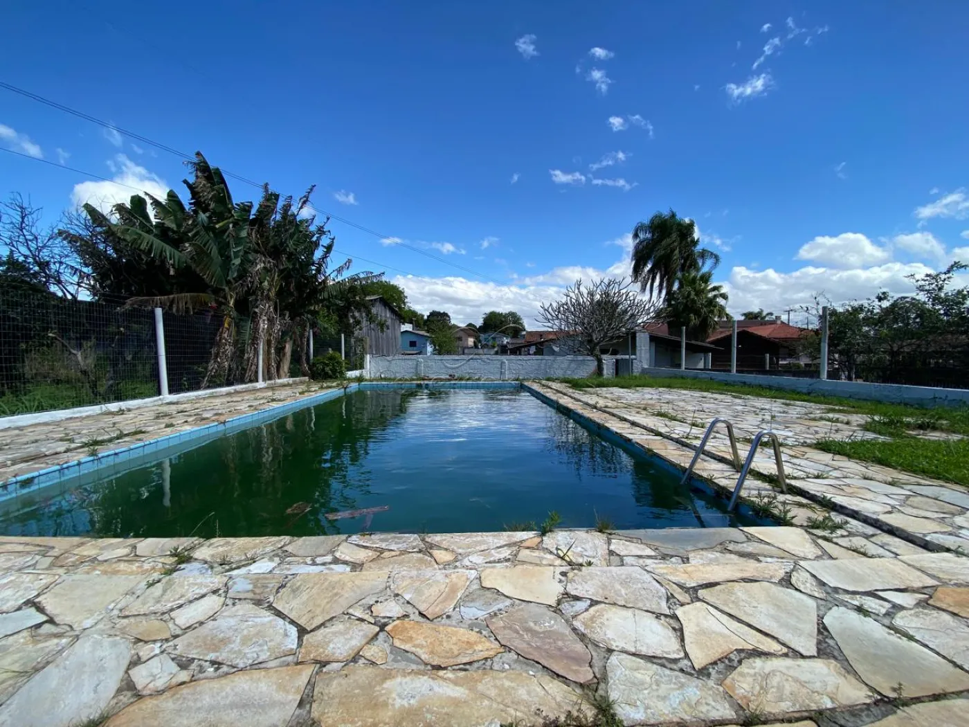 Piscina ampla, iniciando com 1,30m e atingindo 2,20m de profundidade, ideal para relaxar e aproveitar o verão;