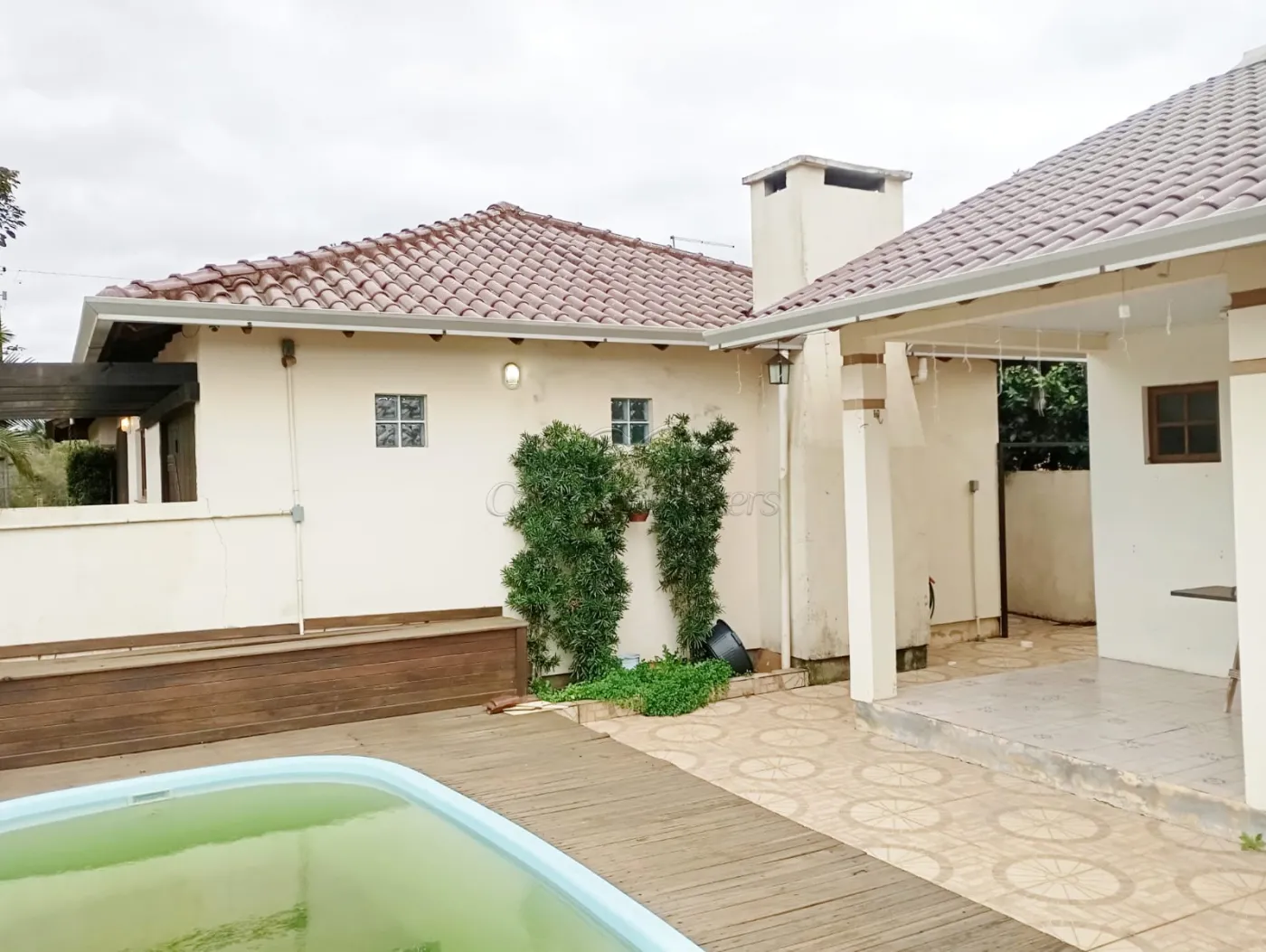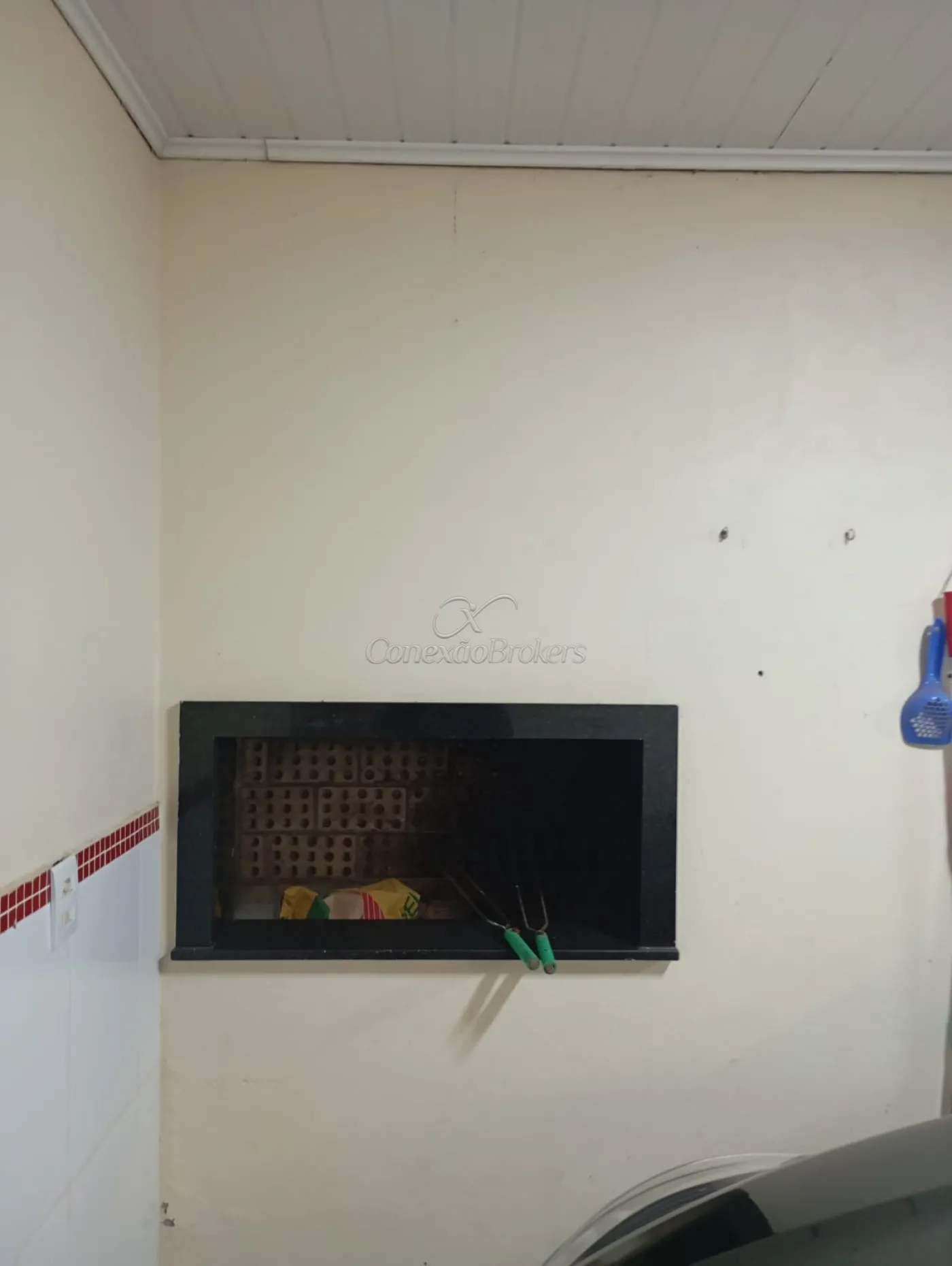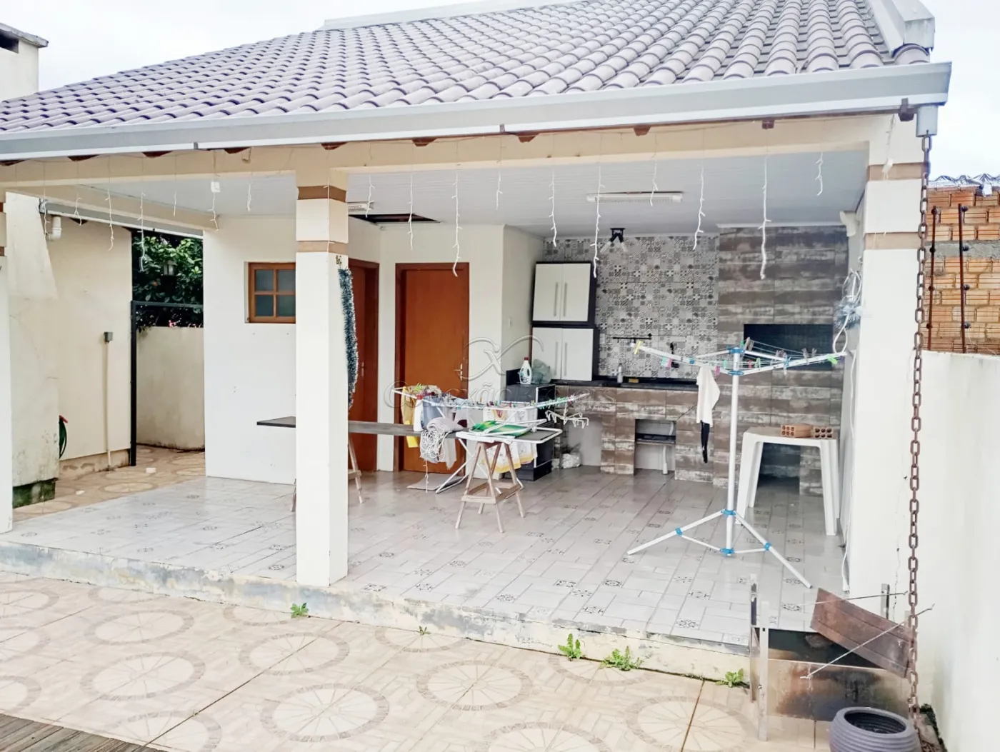 Garagem coberta com churrasqueira